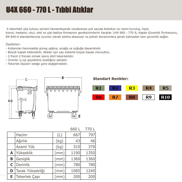 U4X 660 Lt -770 Lt Tıbbi Atık Konteyneri